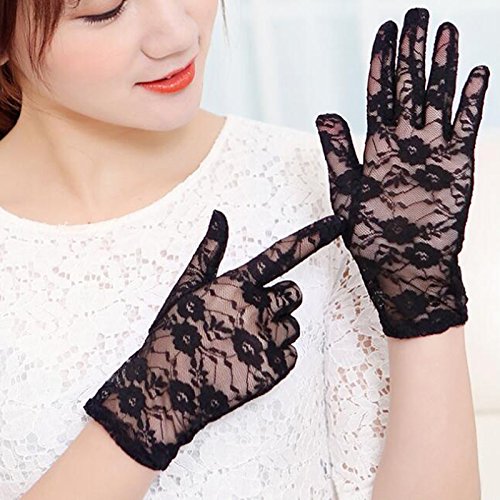 女性のレースグローブ夏の秋セクシーなレースの花の抗UV手袋ホットレディース日焼け止めドライビングパーティグローブフィンガーミトン (ブラック)