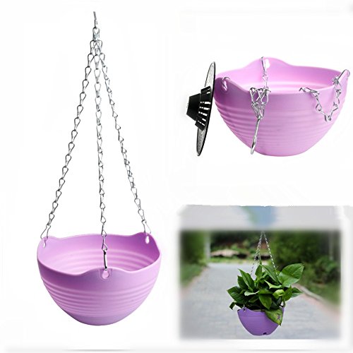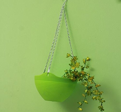 9色20 * 13CMプラスチック平野カラーラウンドハンギングプラント鉢植えの家庭用植物のための金属チェーン付きプラント (緑)