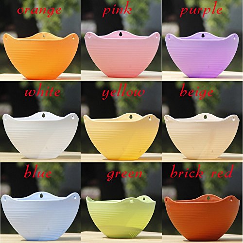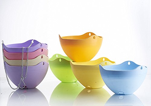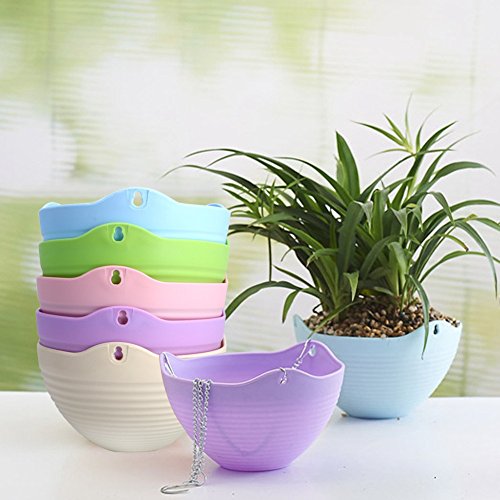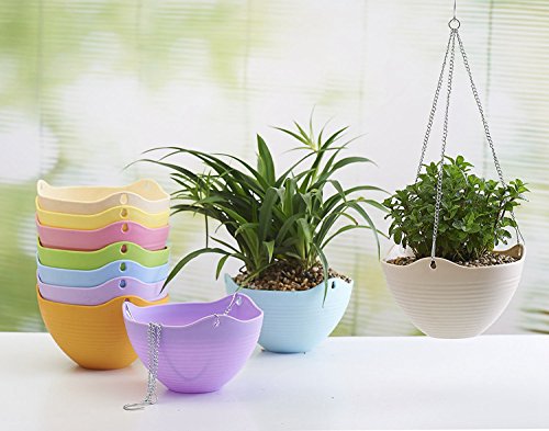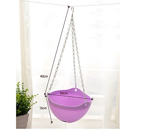 9色20 * 13CMプラスチック平野カラーラウンドハンギングプラント鉢植えの家庭用植物のための金属チェーン付きプラント (黄)