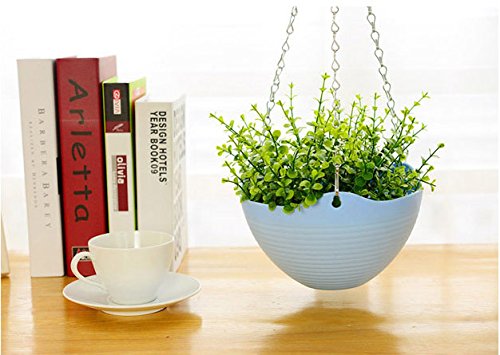 9色20 * 13CMプラスチック平野カラーラウンドハンギングプラント鉢植えの家庭用植物のための金属チェーン付きプラント (青)