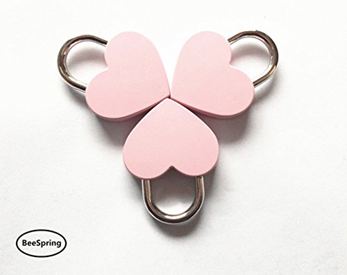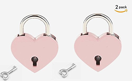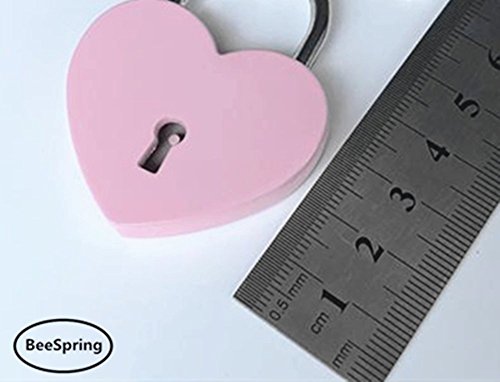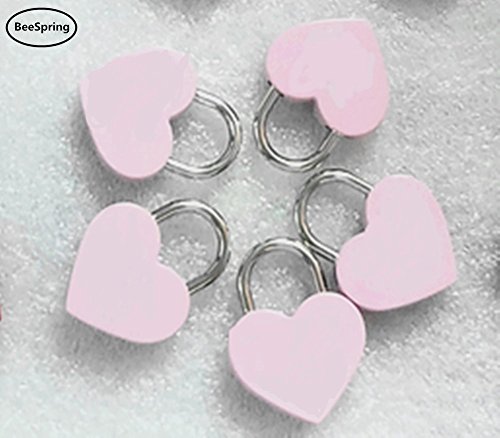 南京錠、Beespring 2個ミニメタルハート型南京錠荷物キャビネットセキュリティロック南京錠引き出しLocke結婚記念日ギフト – ピンクカラー