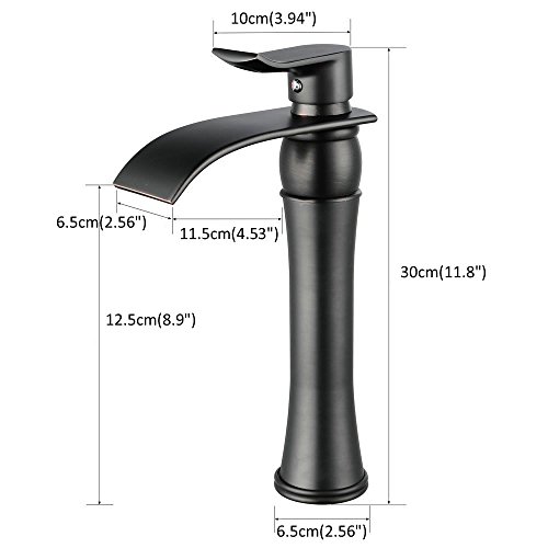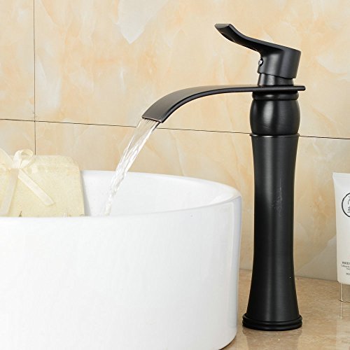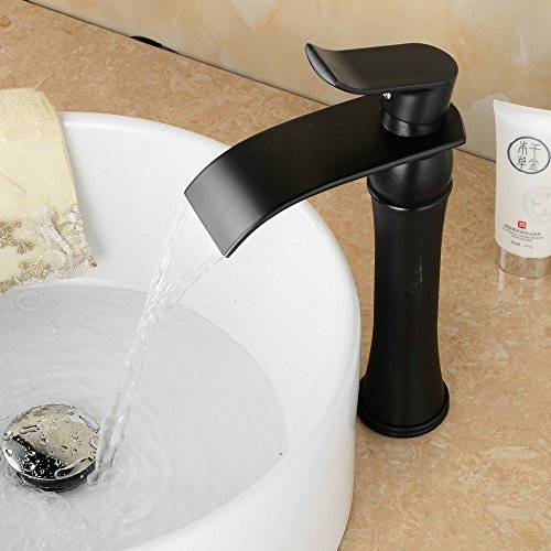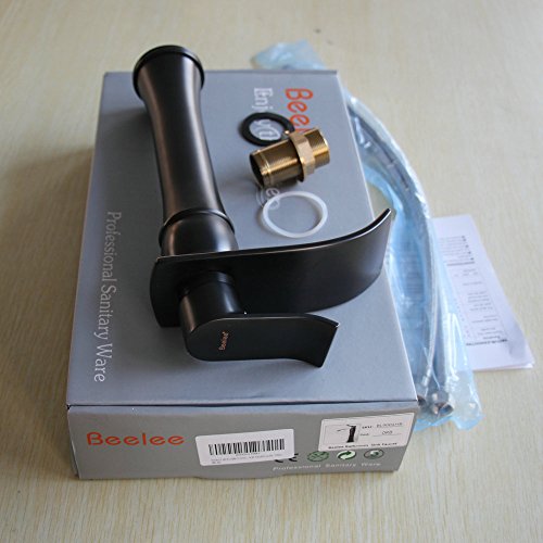 beelee高品質オイル研磨ブロンズバスルームシンク蛇口シングルハンドル付きオイルはブロンズWaterfall注ぎ口バスルームシンク洗面化粧台洗面ミキサータップ – ブラック