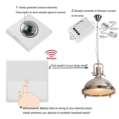 - から運動エネルギーバッテリー – 革新的なテクノロジーを搭載したセルフ転送できない指で押しをタップスイッチパネルに意欲を引き出し、パワー・モジュールを内蔵送信信号をオンまたはオフにするランプ。