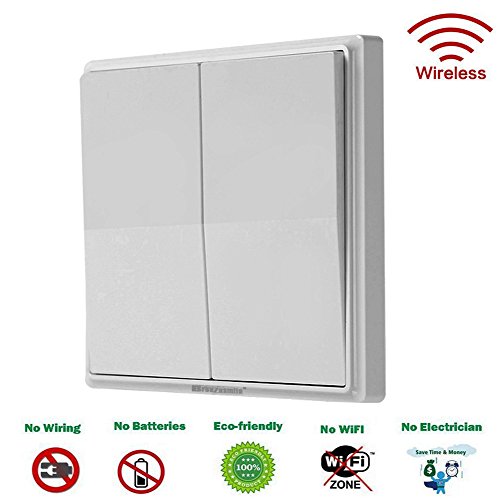 breezesmile自己供給スマートワイヤレスライトスイッチ – 2ギャング壁スイッチ(送信機) no配線no wifiバッテリー不要リモート制御照明&アプライアンス(スイッチのみ)
