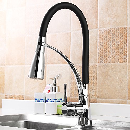 Beho-LED キッチン シンク蛇口ブラック クローム メッキ スプレー蛇口のミキサー タップを冷たいホット ・ プル