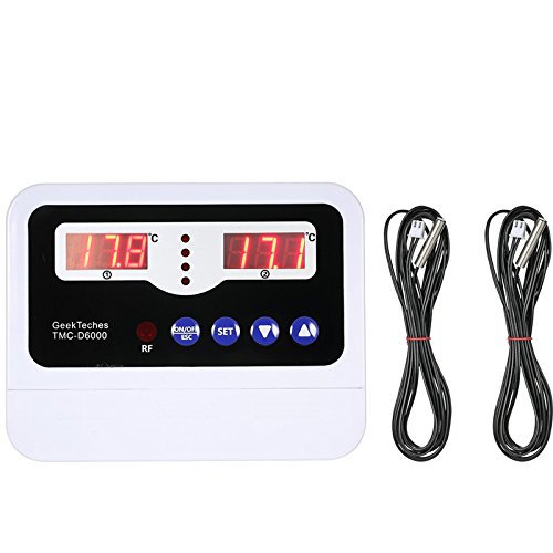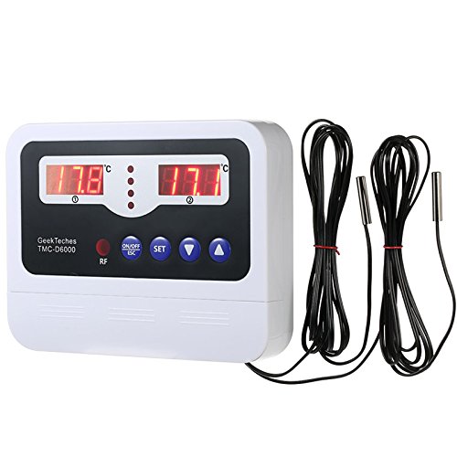 べホー GeekTeches TMC-D6000シングルサーキットデュアルサーキットLEDデジタルサーモスタット温度コントローラーヒーター冷却コントロールスイッチ(2個のセンサープローブ付)