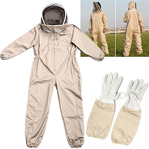 Beho-純粋なコットンの蜂蜜のスーツミツバチのスーツヘビーデューティのスペーススーツレザーの通気されたミツバチの手袋-M