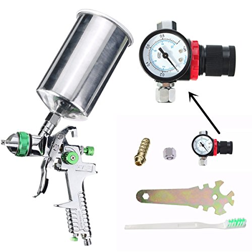 Beho-1.4mm 600cc HVLP重力フィードスプレーガンキットオートペイントプライマーレギュレータ付き 金属フレーク