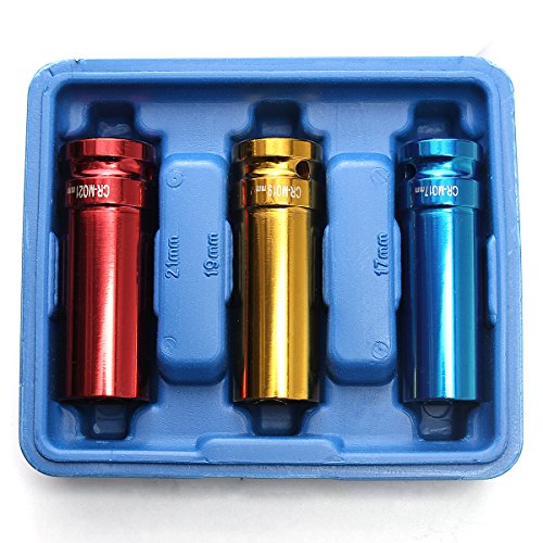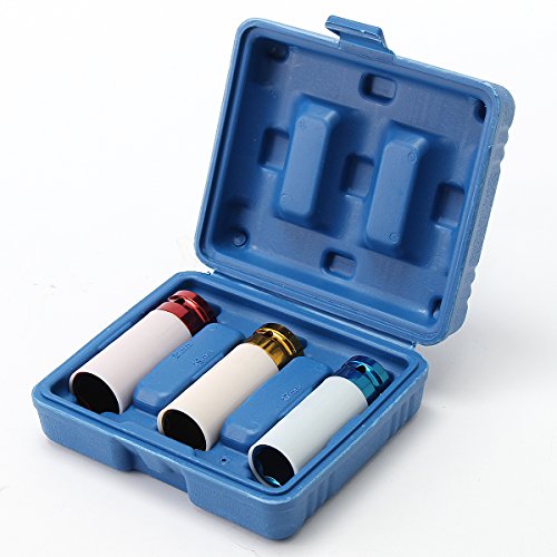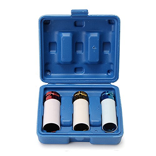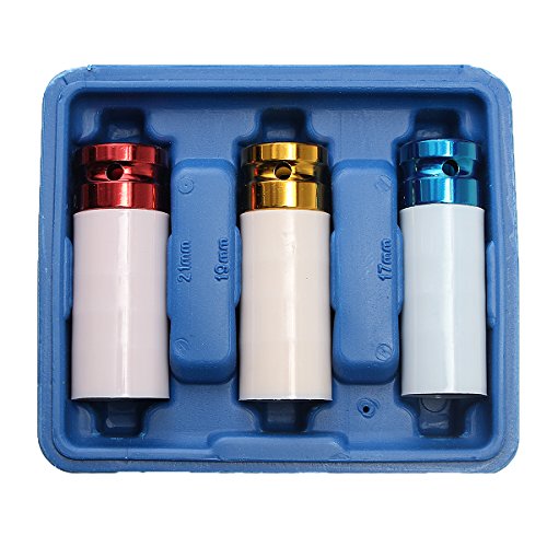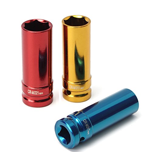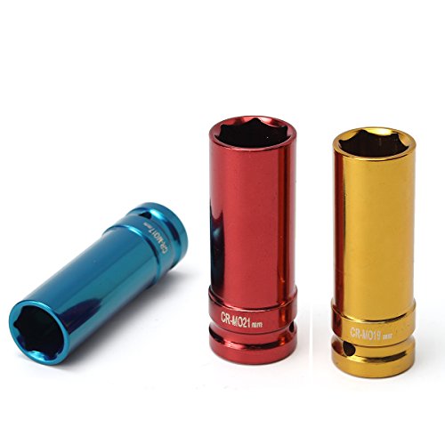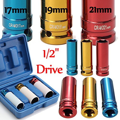 Beho-3個合金ホイールナット 薄壁DEEPインパクトソケットセット1/2インチドライブ 17mm 19mm 21mm