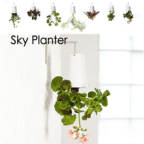 「スカイ プランター」鍋が逆さまユニークな水の植物根の供給水のストレージ システムまたより多くスペースを解放しながら有害なガスを吸収するあります。スペースを節約、節水、クリーンエア、改善健康常にではないあなたのライフ スタイルを持ちたいですか。 説明: