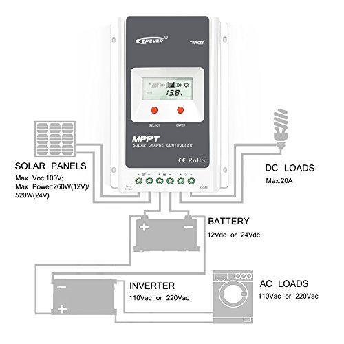 1×TRACER2210A 20Aソーラー充電コントローラ