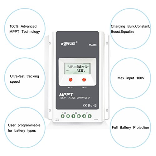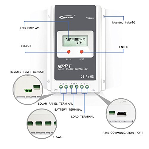 - 入力電圧範囲は、以前の「Tracer-RN」シリーズと変更はありませんが、まず本体にはLCD表示モニターを新たに持ち、外付けのリモートメーター(MT50)があれば、充電パラメーターの任意設定をも可能にしています!