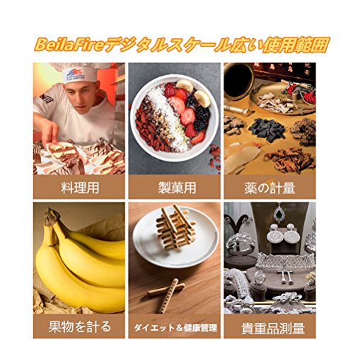 BeilaFire デジタルスケール はかり クッキングスケール 電子秤 1gから5000gまで計量可能 精密 高精度 風袋引き機能 料理用 計量器