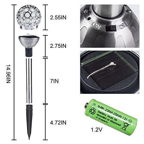 - ✿【操作簡単】-----キャップの下のアイソレータタブを取り外し、ステッキを土に押し込みます。このソーラーランプは、ステンレススチール製で、配線は不要です。ソーラーパネルの下のスイッチを開くと、昼間に充電され、暗闇の中で輝きます。お好きな場所に簡単に取り付けます。