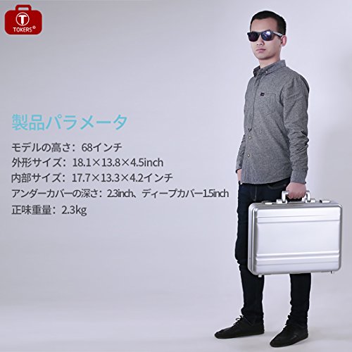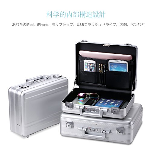 アタッシュケースアルミ箱 収納ツールジュラルミンボックスバッグカバン(18.1x13.8x4.5 Inch)