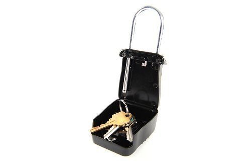 - Hanging key storage box with combination access to multiple keys