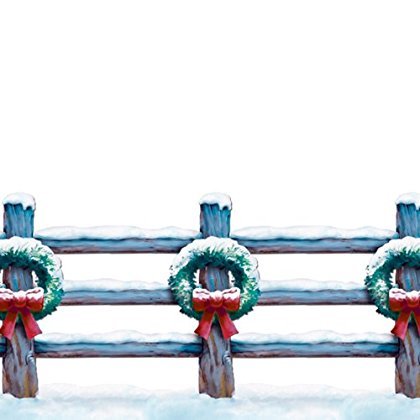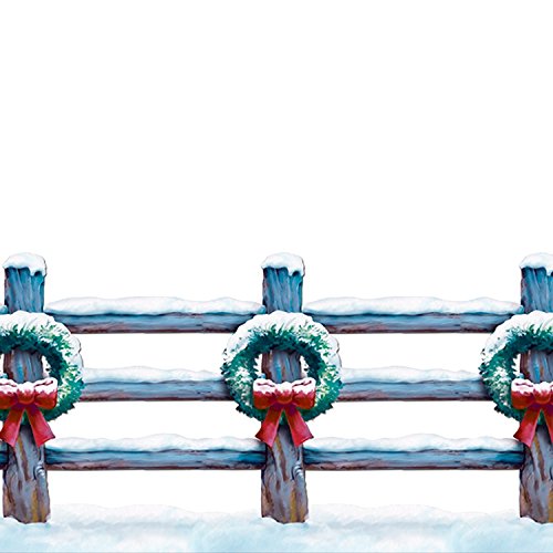 Beistle 20206 Holiday Fence Border. This plastic border features a snow covered wooden fence with Christmas wreaths and red bows and can be used to decorate around a room. It measures 20 Inch by 30 feet. Great to use along with the plastic backdrops and props.