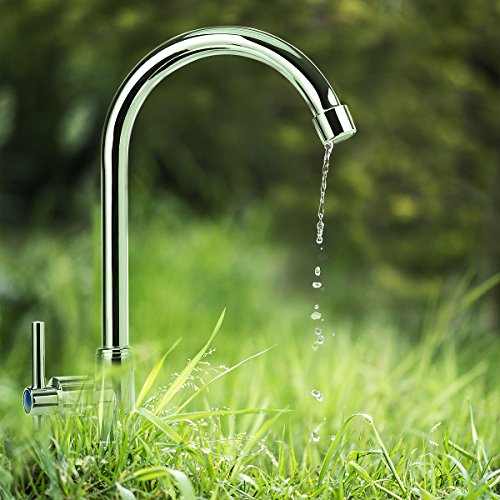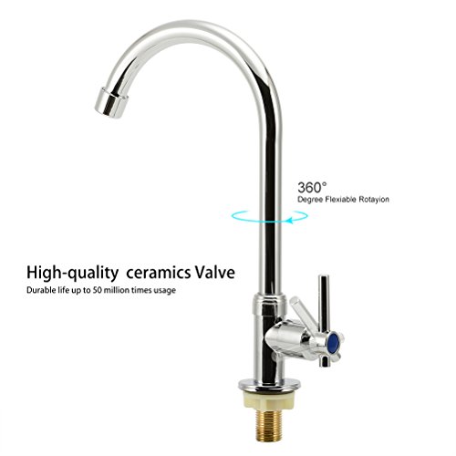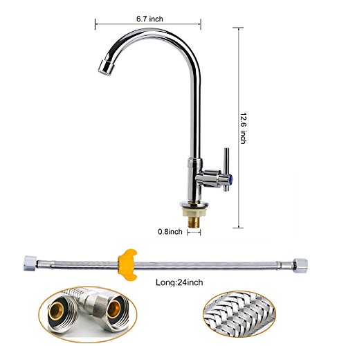 簡単インストールステンレススチールキッチン蛇口、シングルハンドル1つ穴高円弧冷たい水シンク蛇口キッチン、バスルーム、屋外の庭とバー。(フリーコールド水供給線)