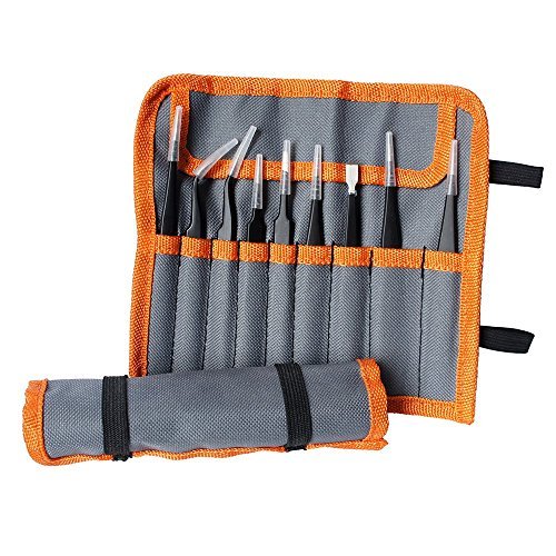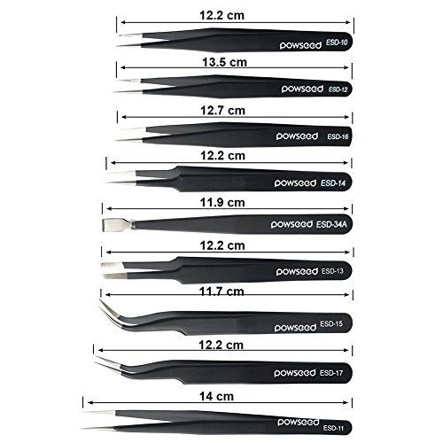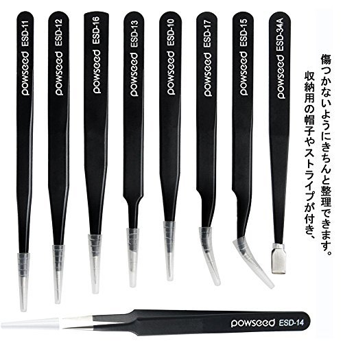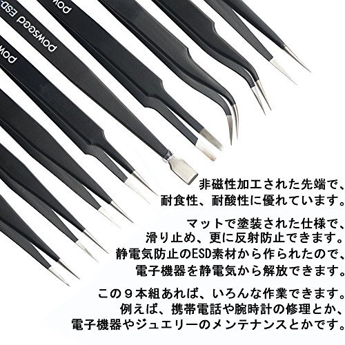 Beito (パワーシード) 精密 ESD ピンセット 防磁 静電防止 9本セット ツイーザー エクステツイーザー (電解防錆黒色皮膜) 極細 黒 収納袋付