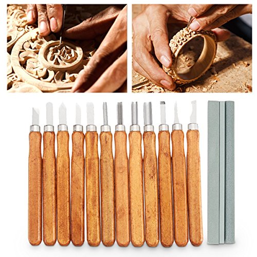 - 内容:12本彫刻刀+3本砥石 素材:鋼+ウッド 柄部材質:木 刃部材質:高炭素鋼