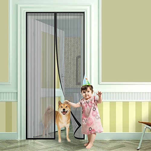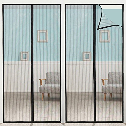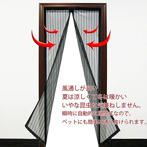 Beito 玄関網戸 虫よけ 断熱 自動式磁気カーテン ドア用メッシュ 取付簡単 ブラック 90×210cm