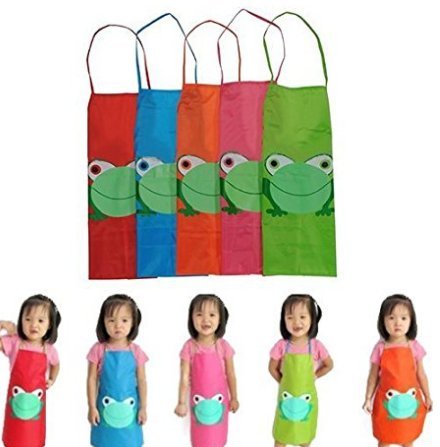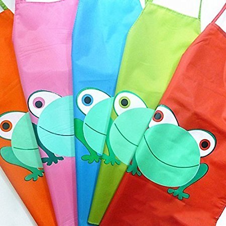 Beito Beito エプロン 絵画スモック 可愛い カエル 子供用 絵画用 食事 お絵かき 泥遊び 防水 防汚 服が汚れない ランダム色 3pcs