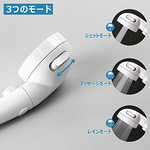 - 【3段階モード】シャワーの快適性を高めるよう、このシャワーヘッドは[ジェット・マッサージ・レイン]という3つモードを設計されました。モード切替ボタンで簡単に切り替えることができます。異なるモードによって通する水量が違いますから、色々場合に適応できます。
