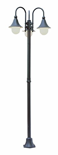 Shepherds hook style. A truly vintage look in turn of the century traditional street light charm. Goose neck lamp arm with flared bell shades. Industrial era outdoor fixture. Very functional.