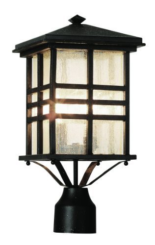 Craftsman 16" post top lantern in black, Fits standard 3" post mounts, Rustic craftsman design, Seeded glass casts dramtic reflection across garden areas, Weather resistant for outdoor conditions