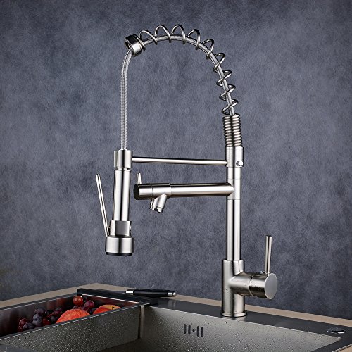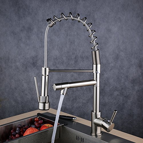 beelee bl0783 N 20 " Contemporaryスプリングシングルハンドルキッチンシンク蛇口with Pull Down Sprayer、つや消しニッケル