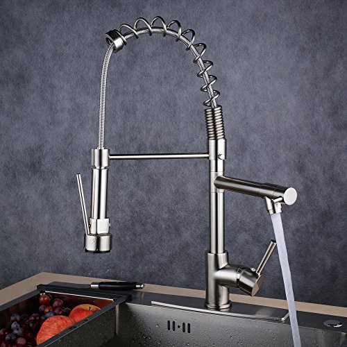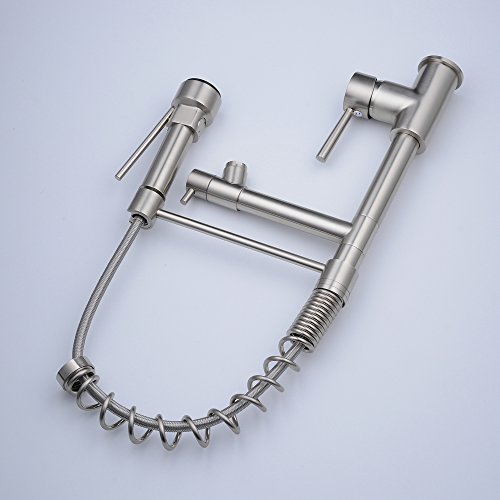 beelee bl0783np 20 " Contemporaryスプリングシングルハンドルキッチンシンク蛇口with Pull Down Sprayer、つや消しニッケル