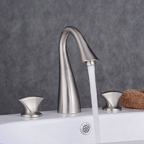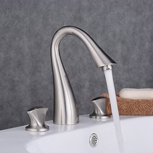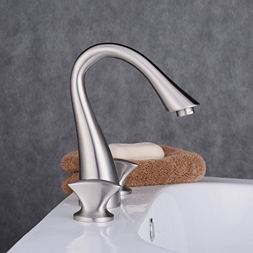 Beelee Three Holes Double Knobs Gooseneck Widespread Bathroom Sink Faucet, Brushed Nickel Finished [並行輸入品]