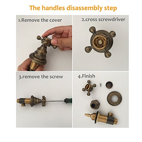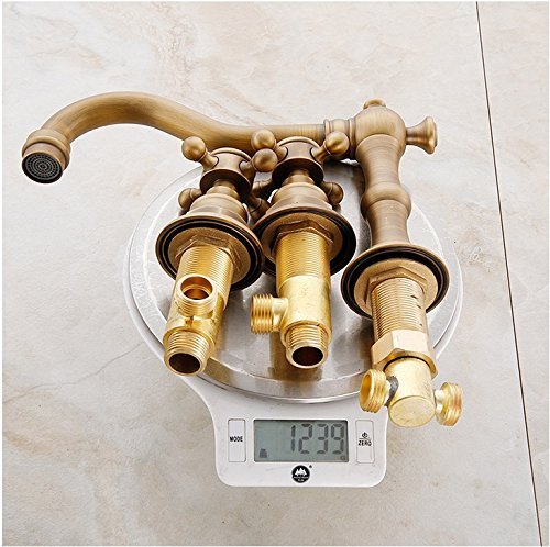 Beelee Deck Mounted Three Holes Double Handles Widespread Bathroom Sink Faucet, Antique Brass Finished [並行輸入品]