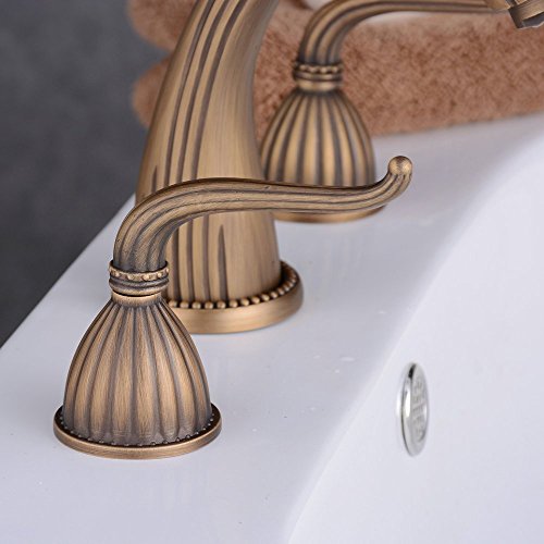 Beelee Antique Brass Deck Mounted Three Holes Double Handles Widespread Bathroom Sink Faucet [並行輸入品]