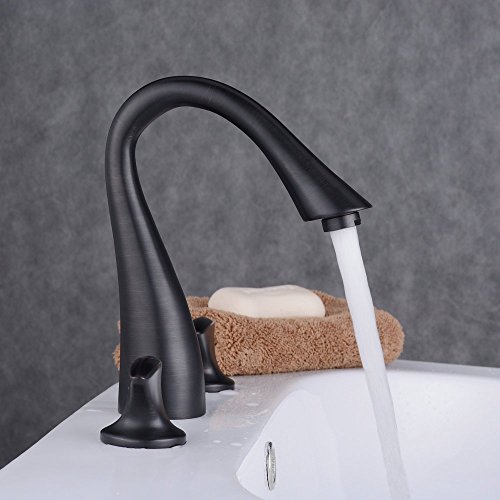 Beelee Three Holes Two Handles Gooseneck Widespread Bathroom Sink Faucet, Oil Rubbed Bronze [並行輸入品]