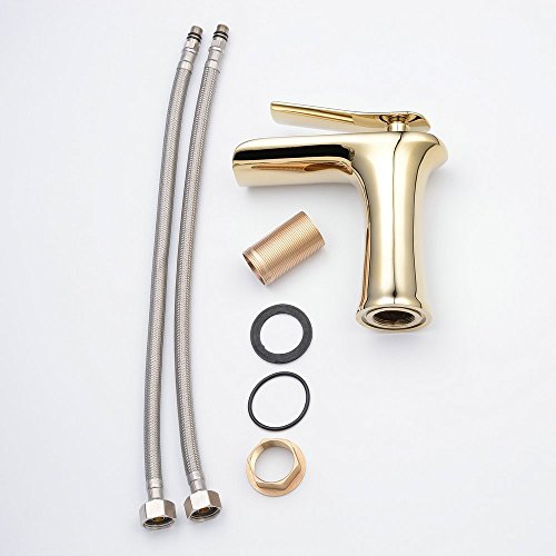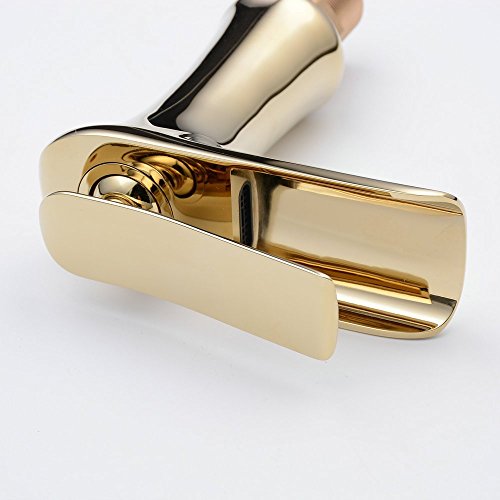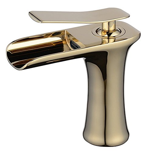 Beelee Single Handle Single Hole Waterfall Bathroom Sink Faucet, Polished Gold [並行輸入品]