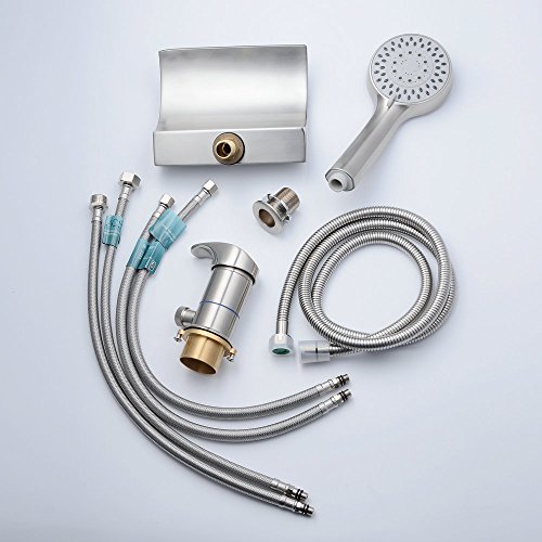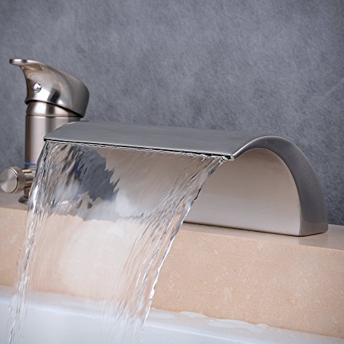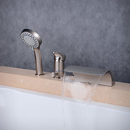 beelee bl6025nw Waterfall浴槽蛇口ハンドシャワー付き3つの穴シングルハンドルニッケルブラシ仕上げby Waitingホーム