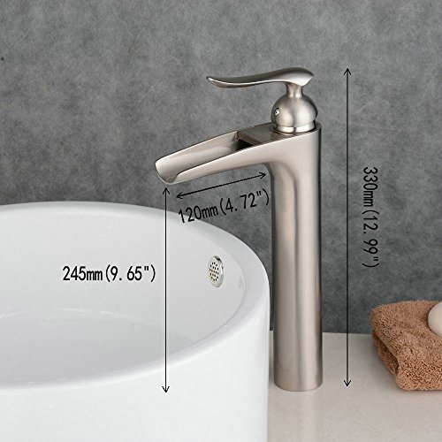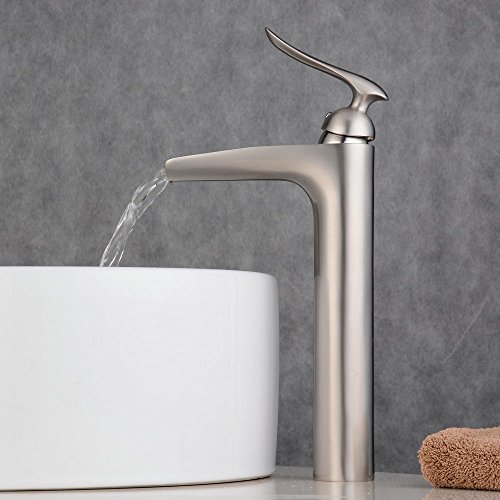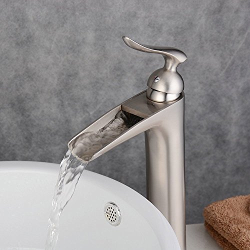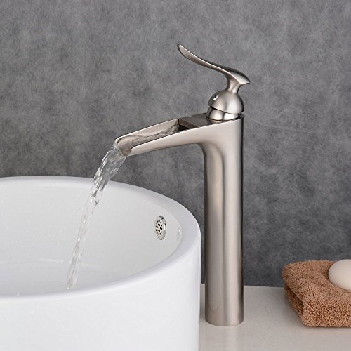 Beelee BL5605N Centerset One Handle Waterfall Lavatory Bathroom Sink Faucet, Brushed Nickel (Tall) [並行輸入品]