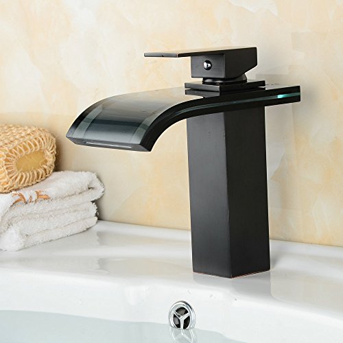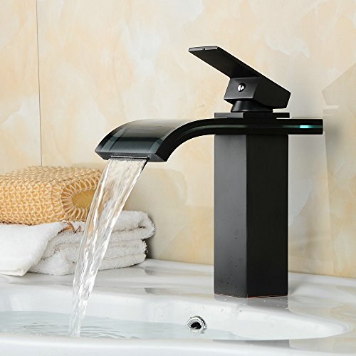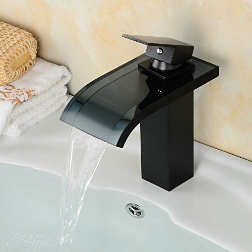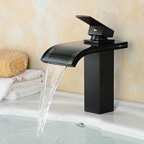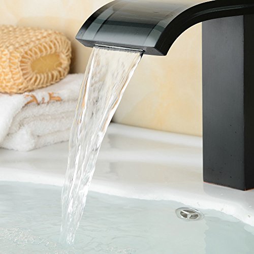 beeleeデッキマウント滝蛇口バスルーム盆地蛇口バスルームオイルはブロンズWaterfall注ぎ口バスルームシンク洗面化粧台洗面ミキサータップ、オイルはブロンズ