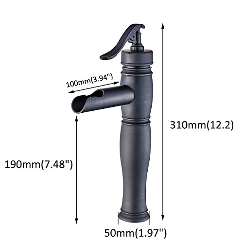 beelee bl0598bh Waterfall注ぎ口排水溝シングルハンドルシンク蛇口ミキサータップ、ORBオイルはブロンズ洗面所洗面Tallボディ