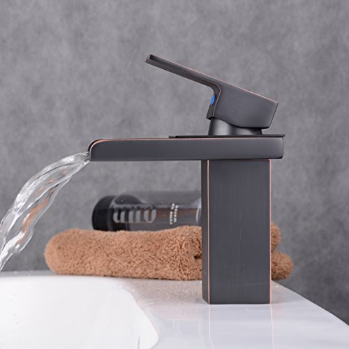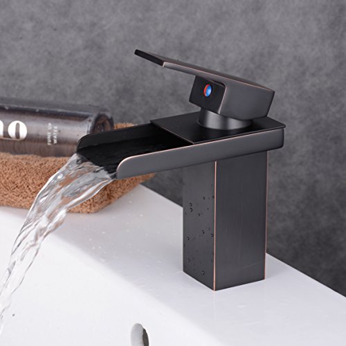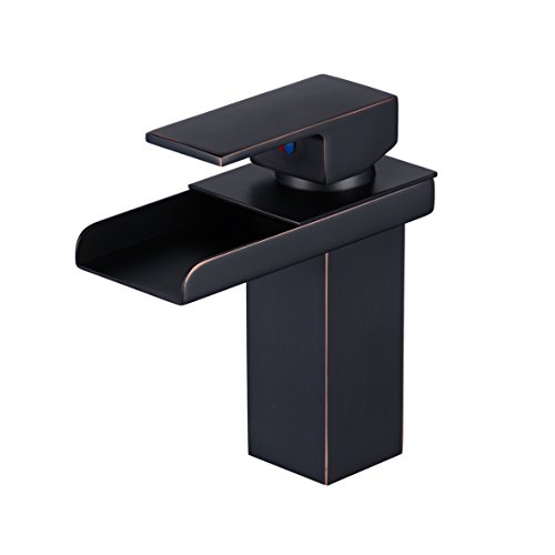 beeleeバスルームシンク蛇口デッキマウントWaterfall真鍮ORBバスルームシンクミキサー蛇口 – ブラック