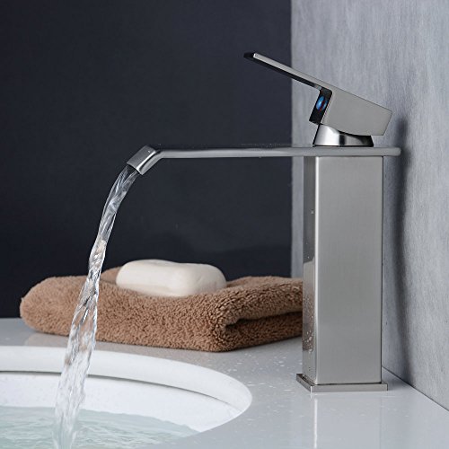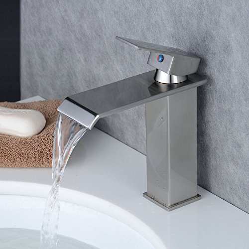 beelee浴室ブラシニッケル仕上げデッキマウントBasin蛇口シングルハンドルシンクミキサータップCockホットセールウォーターフォール浴室洗面シンク洗面シングルコントロール蛇口ミキサータップ洗面化粧台