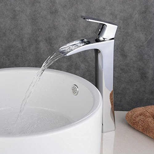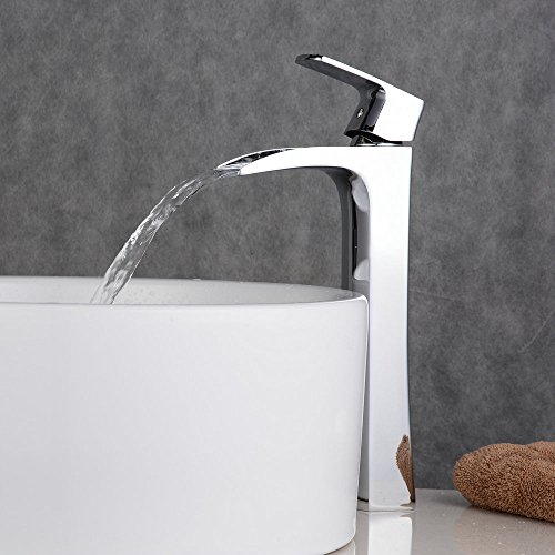 beelee鉛フリー真鍮シングルハンドルウォーターフォールTall洗面所Vessel蛇口 Tall シルバー