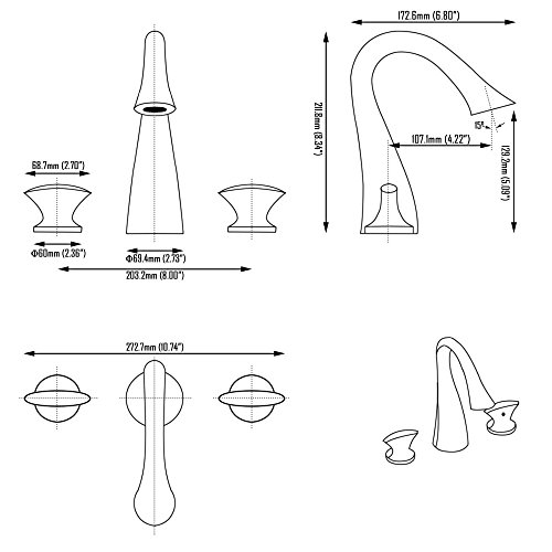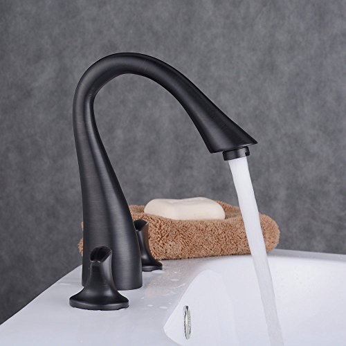 beeleeデッキマウントグースネック3つ穴ダブルハンドルバスルームシンク蛇口