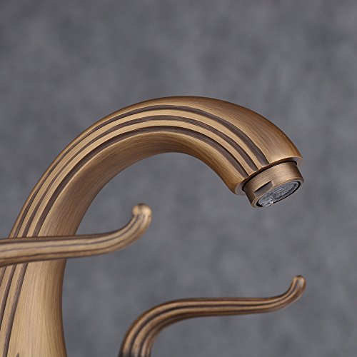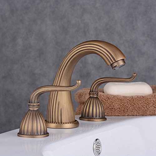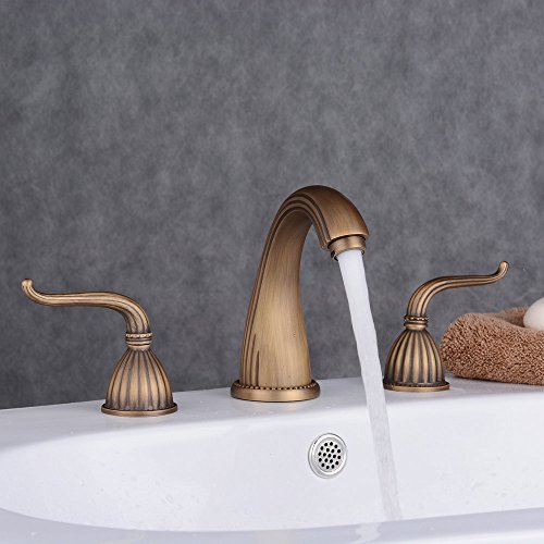 beeleeアンティーク真鍮デッキマウント3つ穴ダブルハンドルWidespreadバスルームシンク蛇口