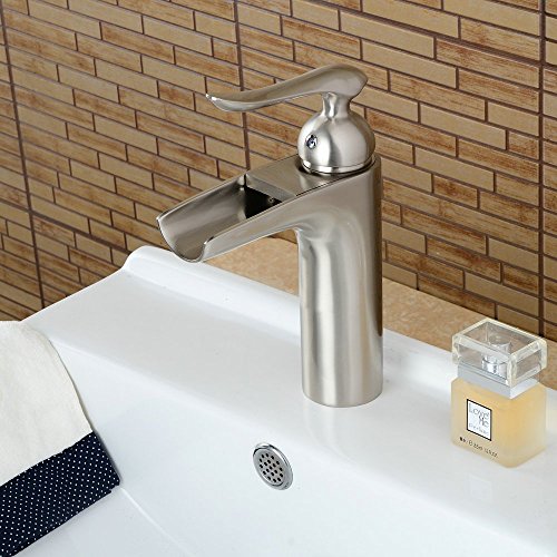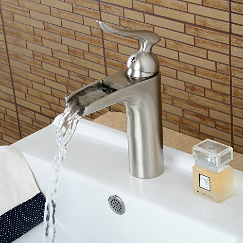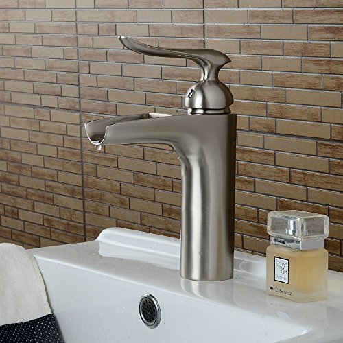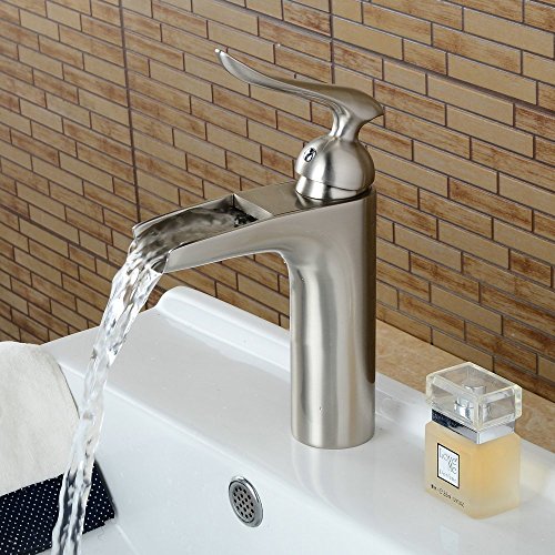beeleeニッケルブラシ仕上げウォーターフォール浴室排水溝シンク蛇口、シングルハンドル単穴洗面所蛇口、ミキサータップ