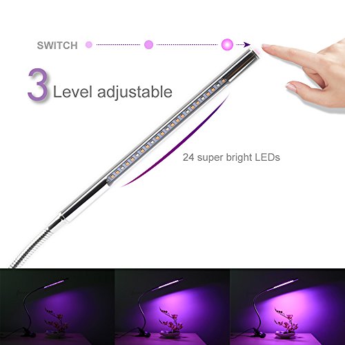 - 【植物成長専用ライト】 -植物成長ライト専用のLEDチップが24個を搭載(16個赤、8個青)、青色光は光合成を促して、クロロフィルやカロテノイドを誘発するのに役立ちます。赤色光は植物発芽、開花や果実を促進する。