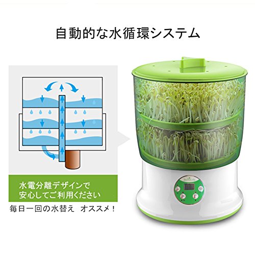 - 【知能化】自動温度制御システムで、いつでももやしにいい成長環境を提供します。8時間メモリ機能付き、停電しても前の作業状態を続けて、予め時間を設定する必要がないです。
