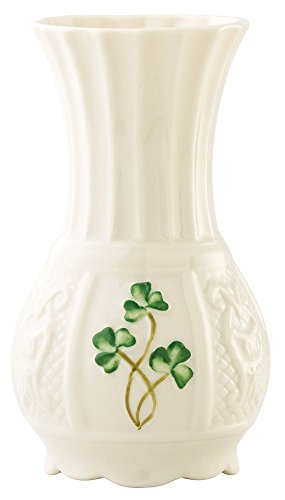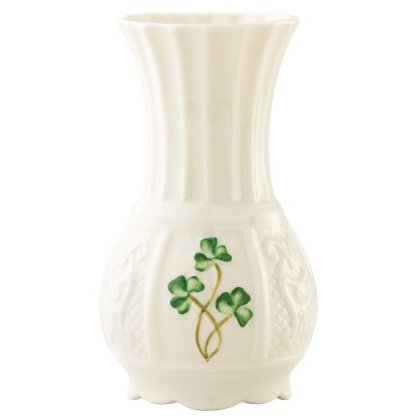The shamrock nadine spill vase is part of the shamrock giftware collection that feature the handpainted shamrocks which have become synonomous with belleek. This vase is 4.75-inch tall.