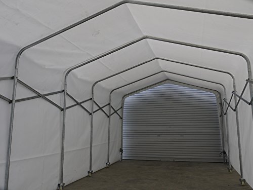 収縮可能な業務用簡易テントストレージBELLOWS SHED(ベローズシェッド)。 ジャバラパイプにキャスターが付属して簡単に畳めます。 車やバイクの収納はもちろん、重機や農機格納庫や簡易倉庫、仮設テントなど様々な用途でご利用いただけます。 本格的なテント倉庫に利用されているPVC樹脂コーティングシートを採用しています。 ■製品詳細 品名:bellows shed(ベローズシェッド) 型番:SH-RS622 フレームサイズ:横260x奥行610x高さ210(cm) 重量:93kg 色:ホワイト 価格 :89,000円(税別) ・日本語説明書付属。 ■使用について ・コンクリート面、アスファルト面での使用を推奨します。 ・本製品は2箇所パイプを固定する為のコンクリート面が必要です。 ・組立、伸縮は2名以上で行ってください。 ■保証について 万が一不備があった場合は速やかに対応させて頂きます。購入日より1ヶ月間(30日間)の無料保証。 ただし、使用に問題のないキズや汚れについては保証対象外とさせて頂いております。 ■製品の注意事項 ・本製品は完全固定式ではありませんので、風や雪に弱い設計です。風が吹く場所や豪雪地帯では使用できません。 ・風が強い場合などは畳んで、丈夫な建物などと固定してください。また、台風などの暴風が予想される場合はテントシートを取ってください。 ・コンクリート面もしくはアスファルト面での使用を推奨しています。砂利、土面ではキャスターの動きが悪くなります。 ・本体最後部パイプは固定される為、一部コンクリート基礎が必要です。 ・本製品は輸入品の為、使用に問題のないキズや汚れがある場合があります。特にシートには汚れがある場合があります。 ・出入口はシートは付属しません。